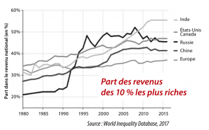 - Les écarts tendent à s’accroître : 82 % de la richesse créée en 2017 a profité aux 1 % les plus riches : les politiques accommodantes menées par les banques centrales depuis la crise de 2008 ont conduit à une inflation du prix des actifs3 qui a bénéficié avant tout à ceux qui avaient déjà des actifs.