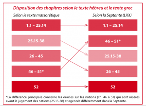 Nonobstant les perplexités qui ont été engendrées par ces différences, il nous semble plus pertinent de continuer à suivre l’ordre du texte hébraïque pour analyser le plan du livre[2].